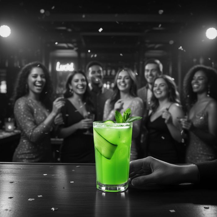 - Garnish with a cucumber ribbon and a fresh mint sprig.